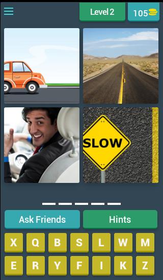 4 Pics 1 Word Puzzle Game, которая может заставить вас играть и наслаждаться с другом и семьей, поднявшив скрытое слово на 4 рис, каждые четыре картинки связаны только с одним словом или средством